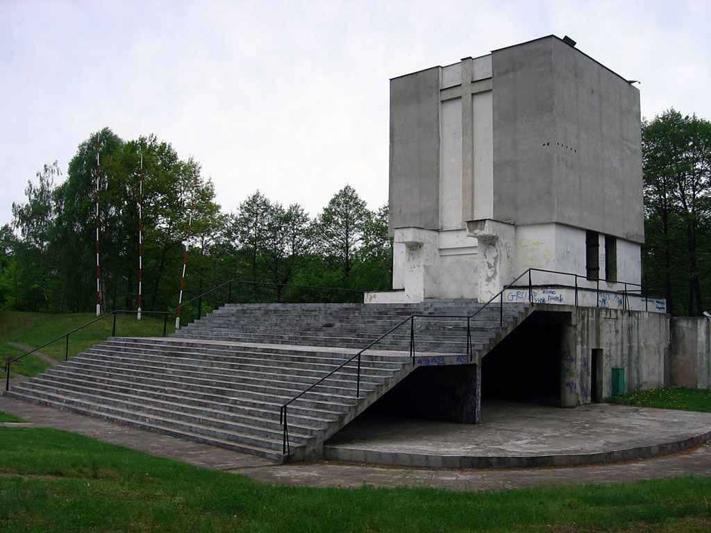 Zwiedzanie mauzoleum najczęściej zaczyna się od wejścia na teren fortu, gdzie pierwsze wrażenie buduje wyraźny kontrast między nowoczesną bryłą pomnika a organiczną formą ziemnych wałów oraz linii fosy. Już z poziomu dziedzińca widać, że całość zaprojektowano jako założenie wielopoziomowe: monumentalne schody prowadzą ku kaplicy, a jednocześnie widać wejścia do niższych kondygnacji ekspozycyjnych.